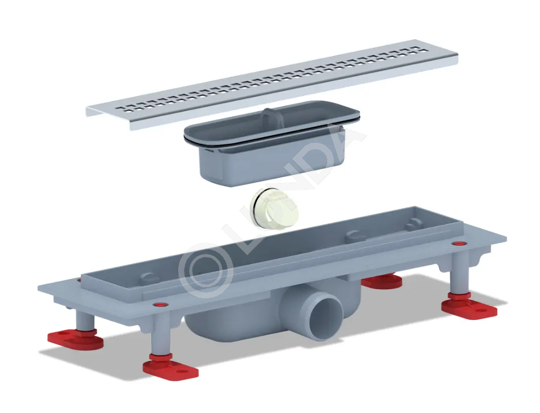 Трап линейный пластиковый, выпуск 40 мм, решётка Риф нержавеющая сталь, АНИ Пласт