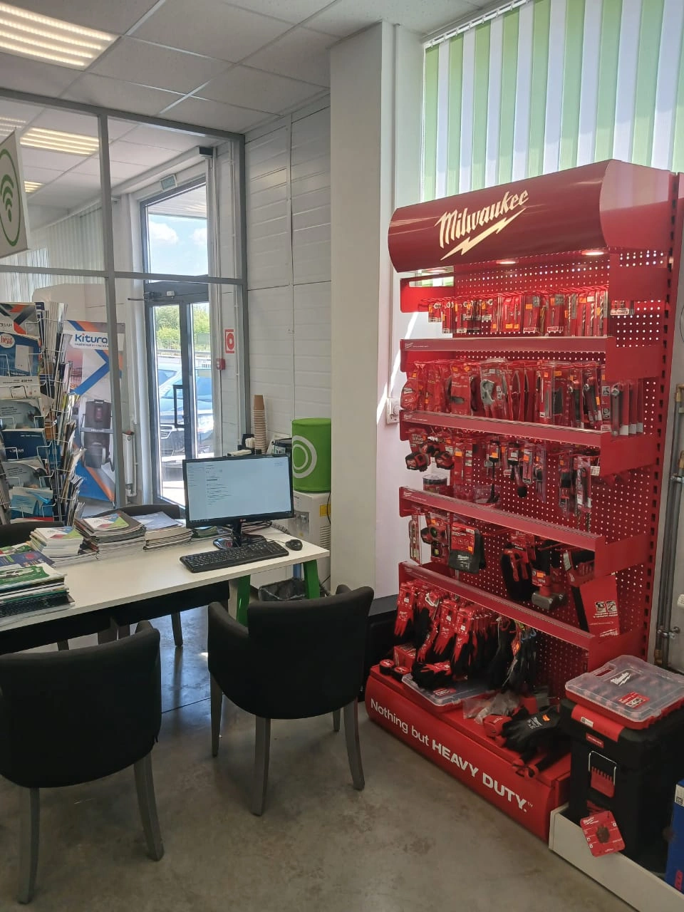 Склад: площадь 880 м², в наличии 3 000 товарных позиций.
