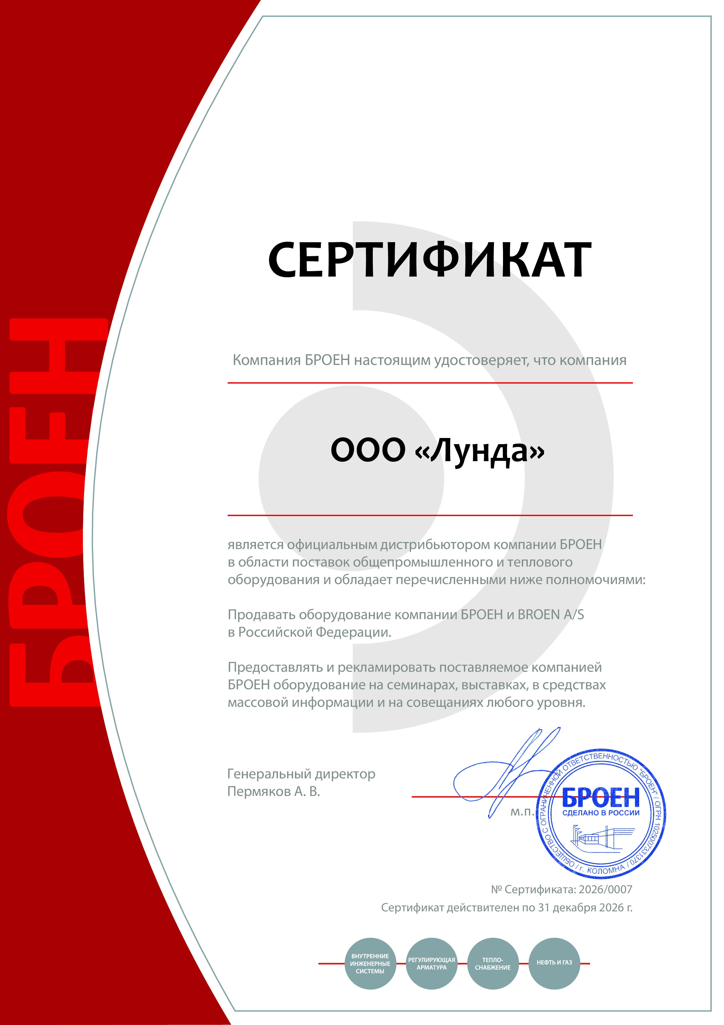 ООО «Лунда» – официальный дистрибьютор Broen.