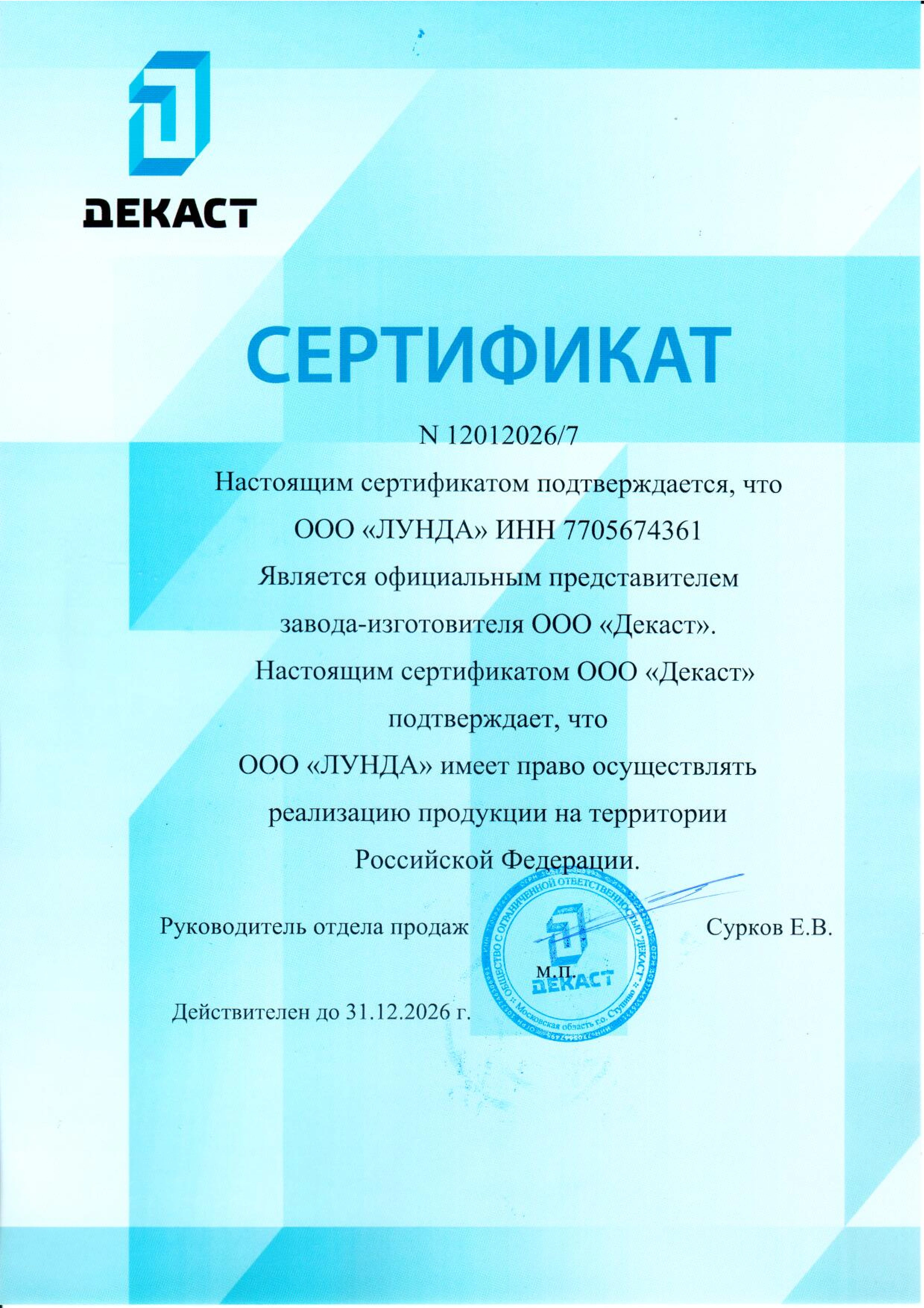 ООО «Лунда» – официальный дистрибьютор Декаст.