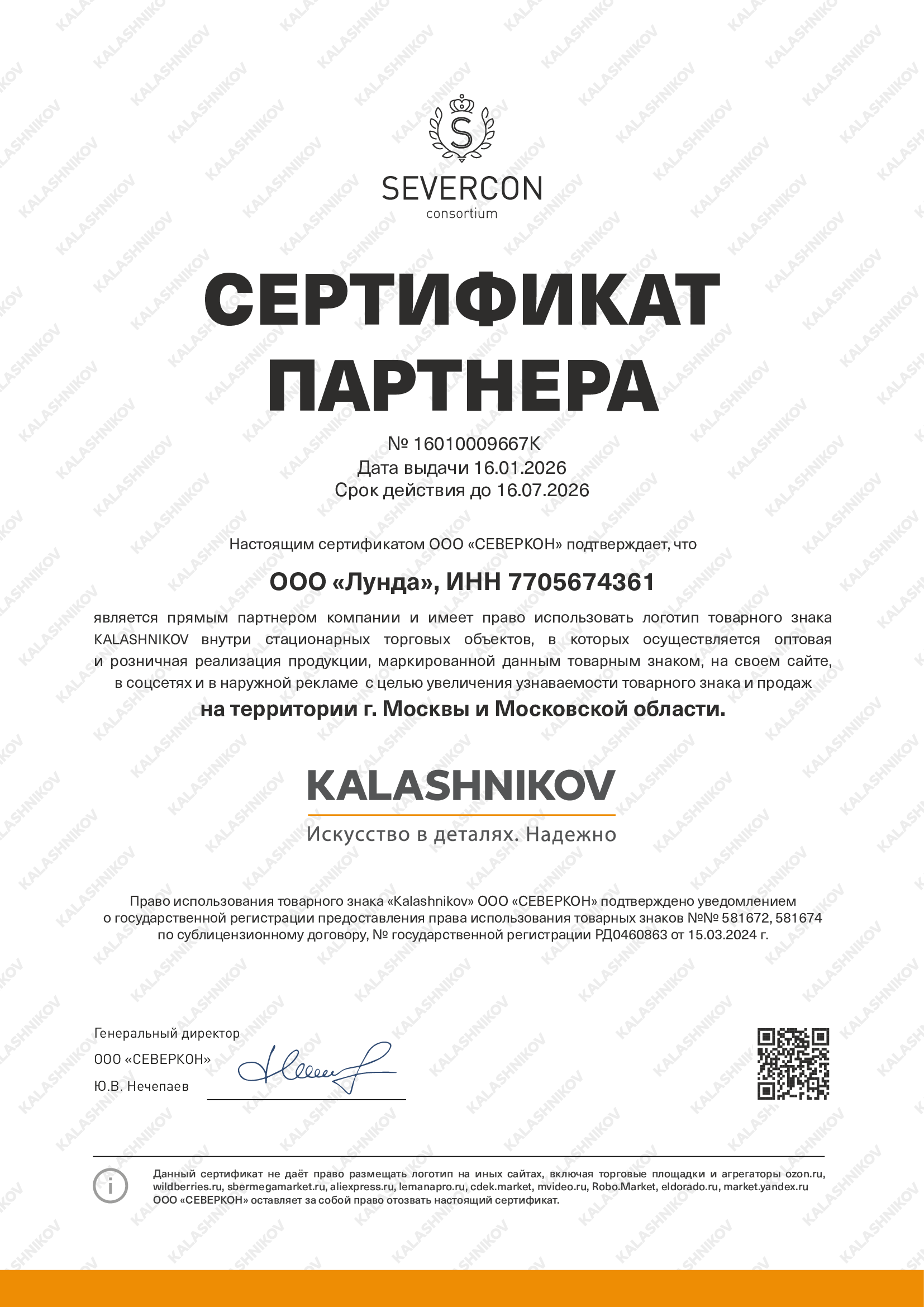 ООО «Лунда» – официальный дистрибьютор Kalashnikov (Калашников).