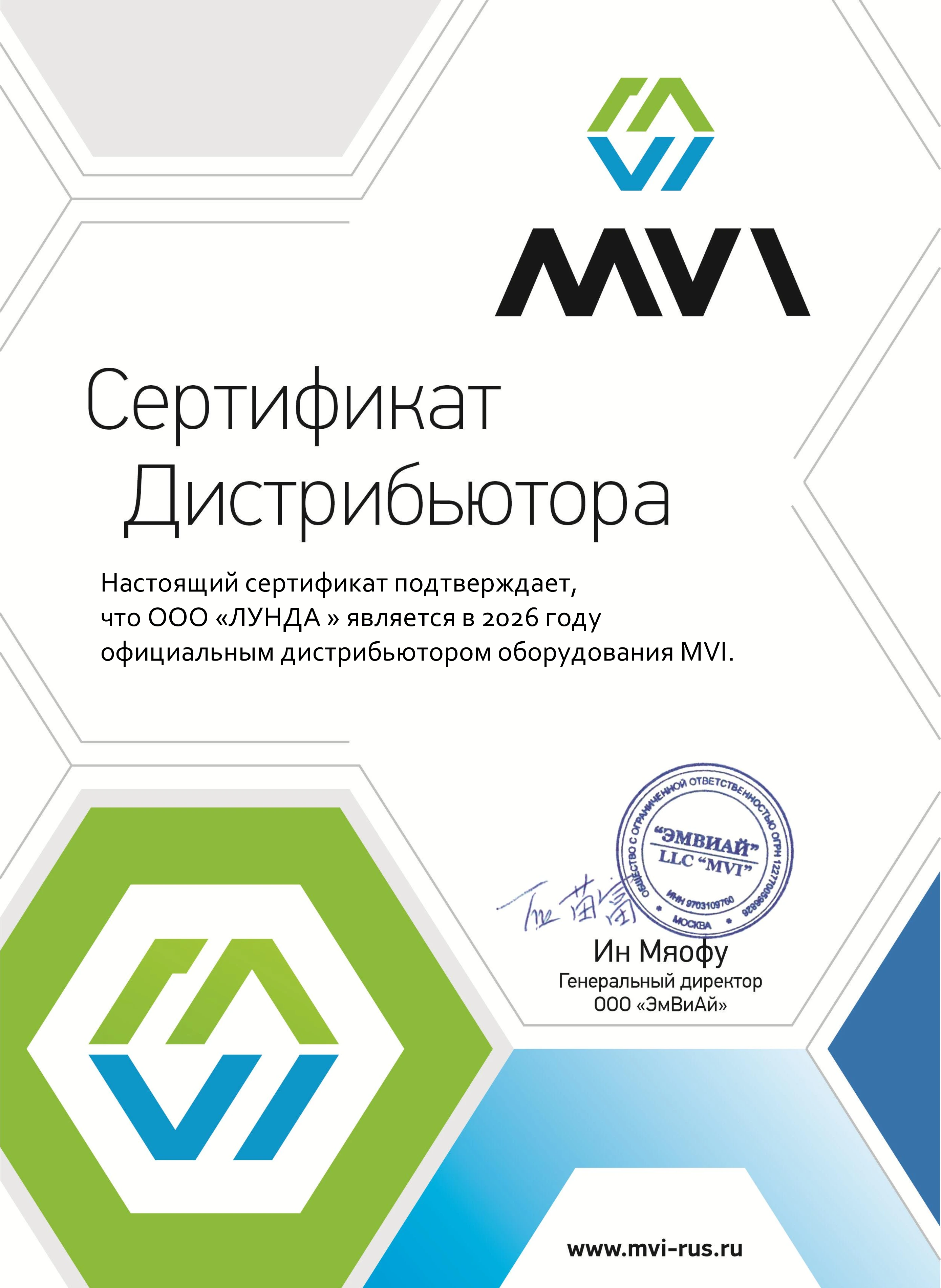 ООО «Лунда» - официальный дистрибьютор MVI.
