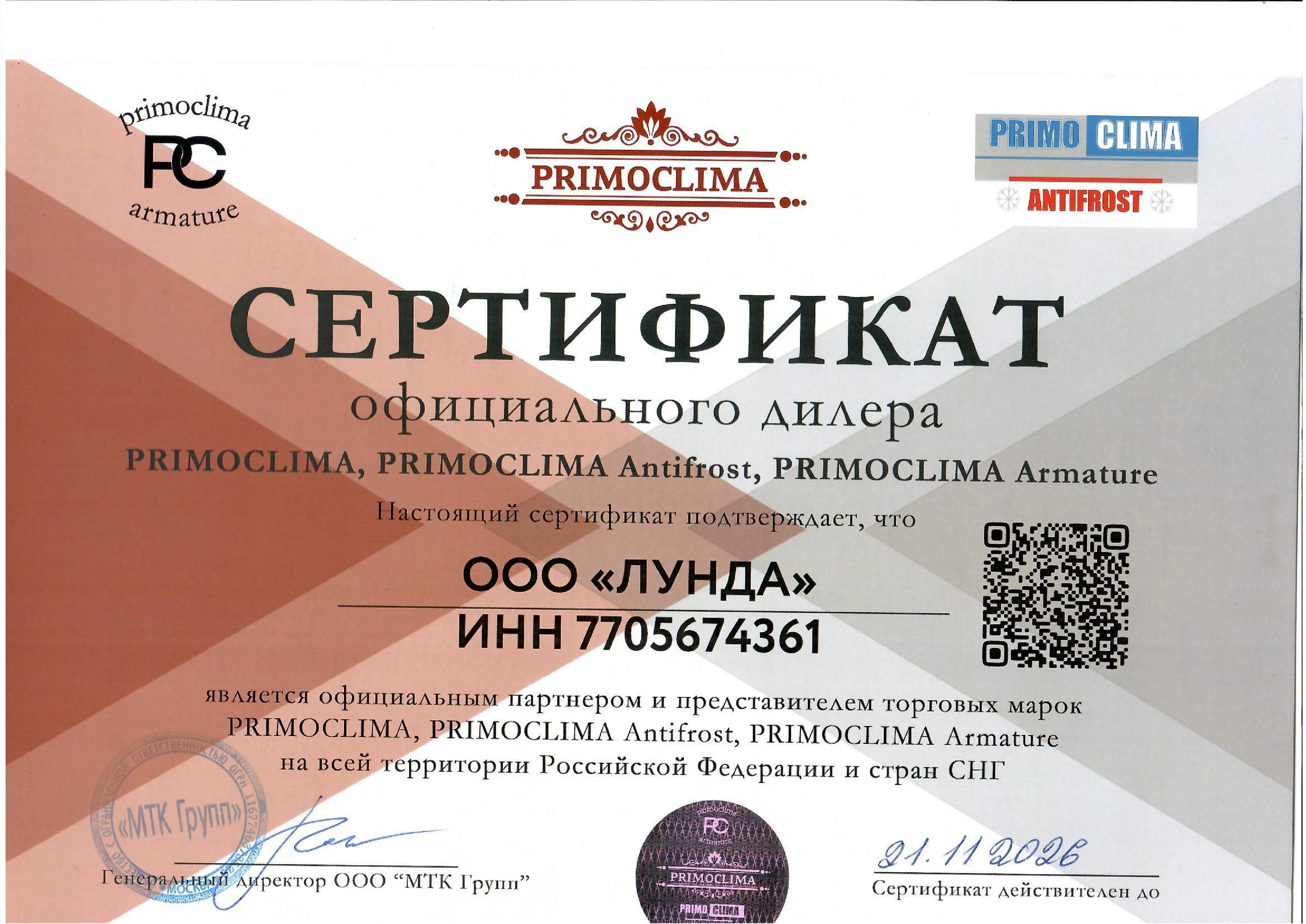 ООО «Лунда» – официальный дистрибьютор Primoclima.