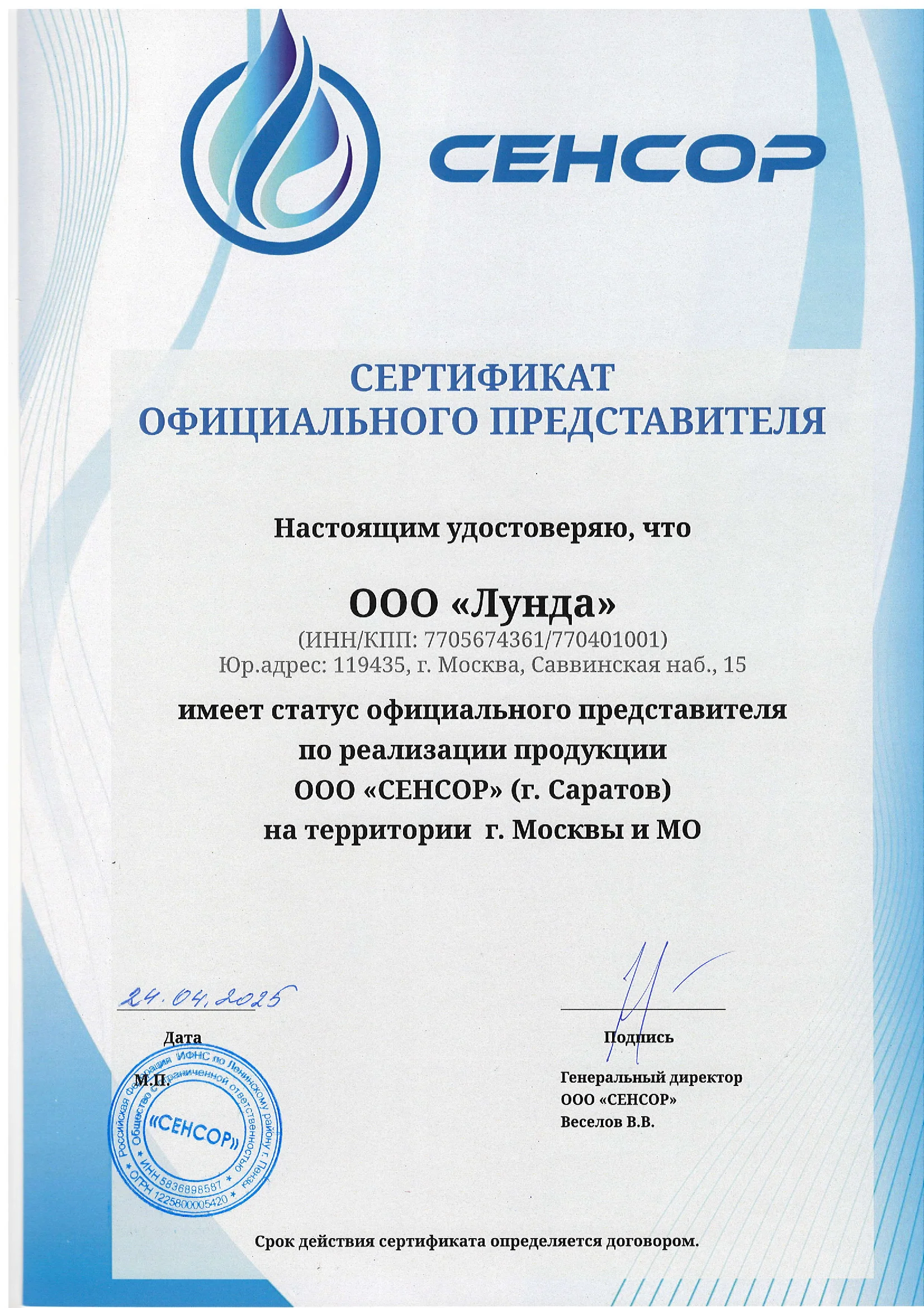 ООО «Лунда» – официальный дистрибьютор Сенсор.